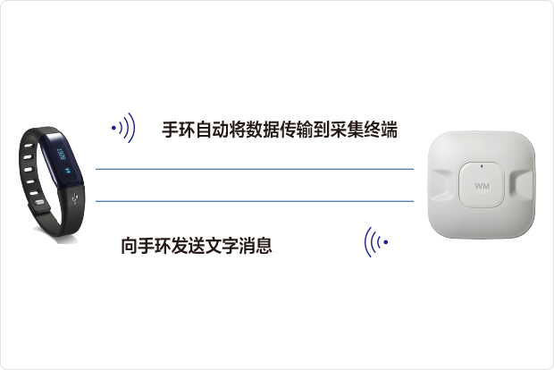 安装在教室内、功能室内、室外操场、学校大门口等区域,通过无线热点实现数据采集,自动获取学生智能健康手环中的数据,将数据传输到管理平台中