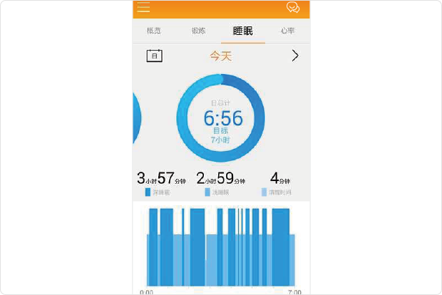 手环自动记录学生睡眠情况,每日入睡时间、醒来的时间,深度睡眠时间等信息。可设置睡眠不足预警信息,提醒家长关注孩子的睡眠质量